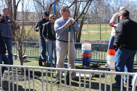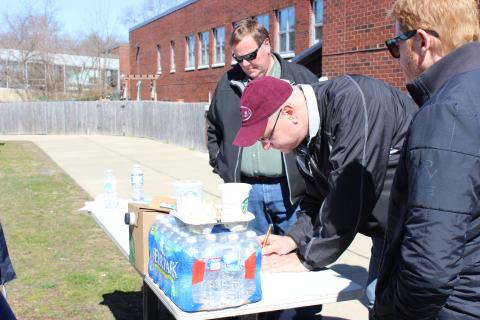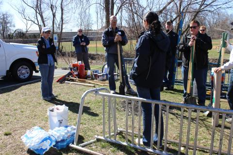 IBTTA volunteers, in conjunction with Jersey Cares converged on Manasquan Elementary School, located in Manasquan, NJ on the Jersey Shore, on Sunday, April 6, 2014. The school is comprised of 677 students in grades K-8. The town of Manasquan has a population of 5,900. During Superstorm Sandy, 31 percent of Manasquan’s rental units were damaged, making the borough among the worst-hit towns on the Jersey Shore.